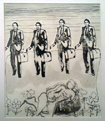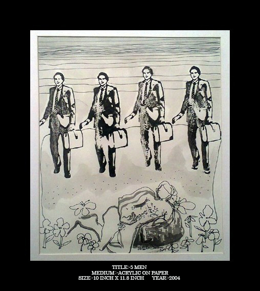 "More often than not man/men in her paintings becomes the symbol of a shifting ambivalent balance between the sexes," SEEMA BAWA The Pioneer 1999